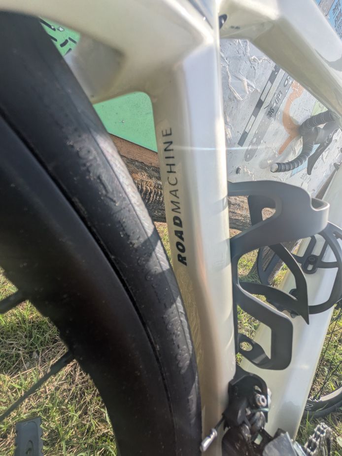 あと塗装が好きです。わかりにくいですが、マットではなくうるっとしたラメ入りの優しいホワイトです。BMCって結構いかちいイメージありがちなんですけどこのバイクはシルエットはきっちりしつつもカラーで柔らかい印象が加わっていると思います。