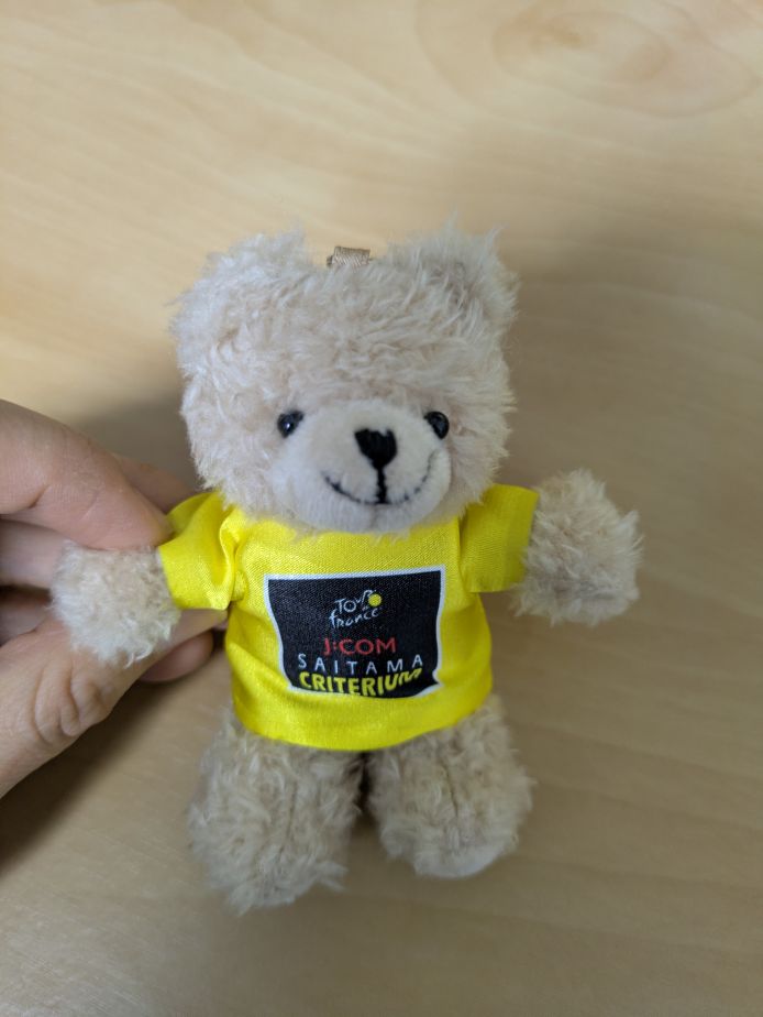 総合優勝ジャージを着たクマちゃん。結構お高かったけど毛がフワフワなので質が良いんだろうな