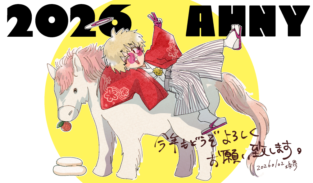 E天-2026年あけおめイラスト 2026年明けサイトのトップ絵として突貫で描きました。天使は深いこと何も考えずに描けてラクでいいです。なんか目出度いし。昔描いた牛といい、干支をピンクにするのが好きみたいです。